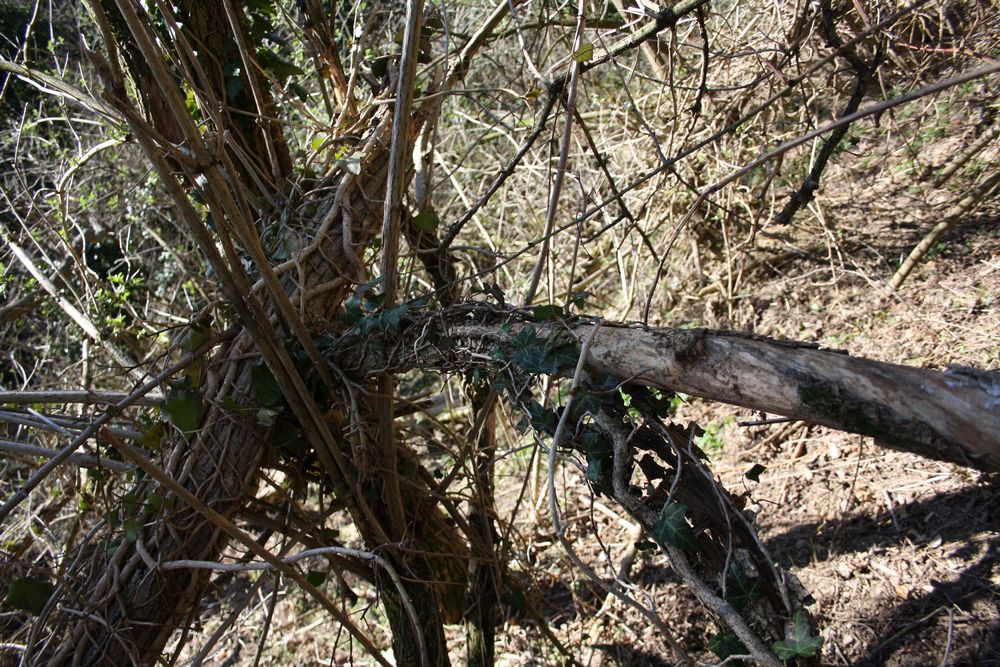 Un tronco molto interessante: se ci fate caso la parte destra della pianta è ancora vegeta, mentre quella all'estrema sinistra è secca, e si nota il segno di una galleria larvale: