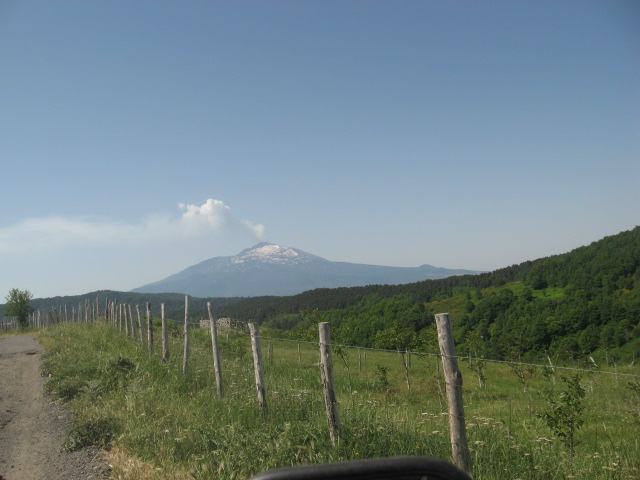 Come sempre a dominare il paesaggio è sua maestà l' Etna che non smette mai di "fumare"