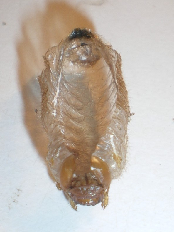 Poi due belle pupe alloggiate all'interno della vecchia cuticola larvale.