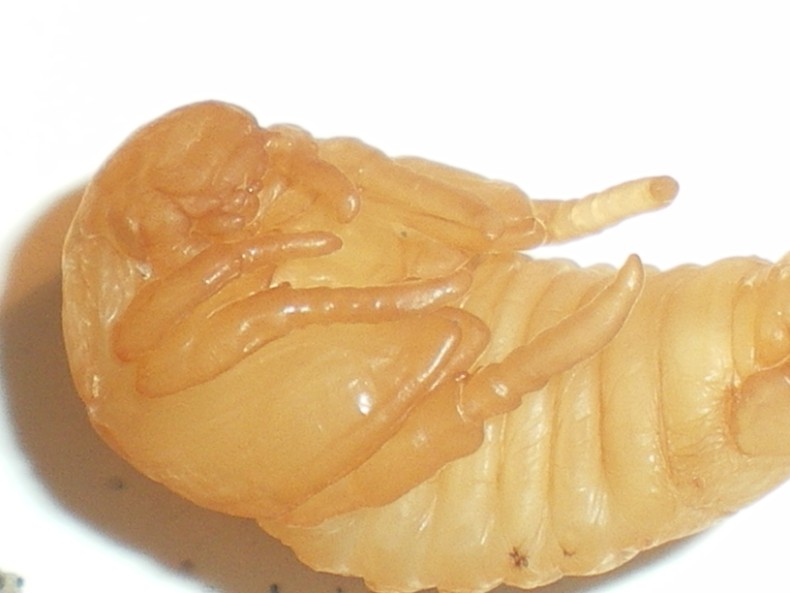 Poi due belle pupe alloggiate all'interno della vecchia cuticola larvale.