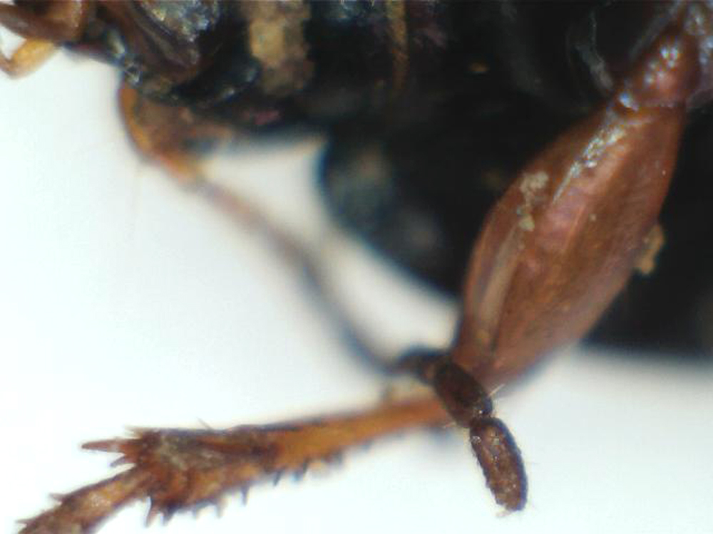 allora lo sperone è tridentato, le zampe sono unicolori e il poro setigero scutellare c'è!