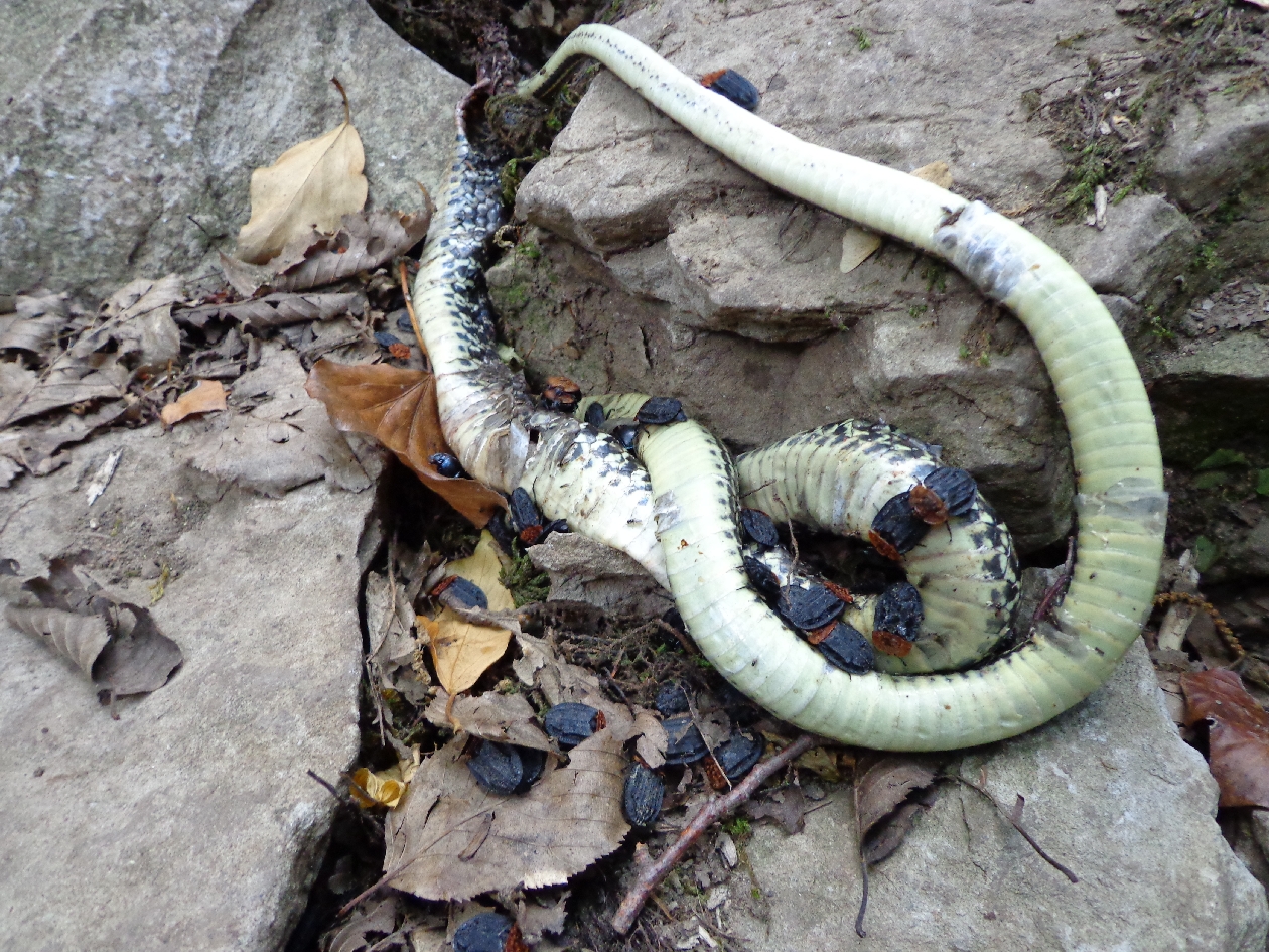 Presumo che la bestiola scagliosa se ne stesse comodamente su un sentiero a godersi del caldo sole estivo....fino a quando, il solito cretino di turno, terrorizzato dalle potenzialità venefiche del mostro ( :? ) abbia astutamente eliminato il povero animale gettandolo poi lontano.....in un piccolo rio asciutto, profondamente incassato tra due alte sponde.