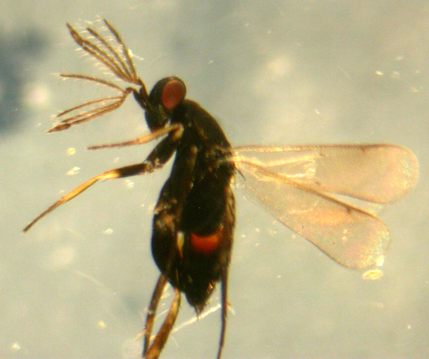 Probabilmente si tratta di Elasmus unicolor o di Elasmus rufiventris, parassita di piccoli Lepidotteri quali le sesie.