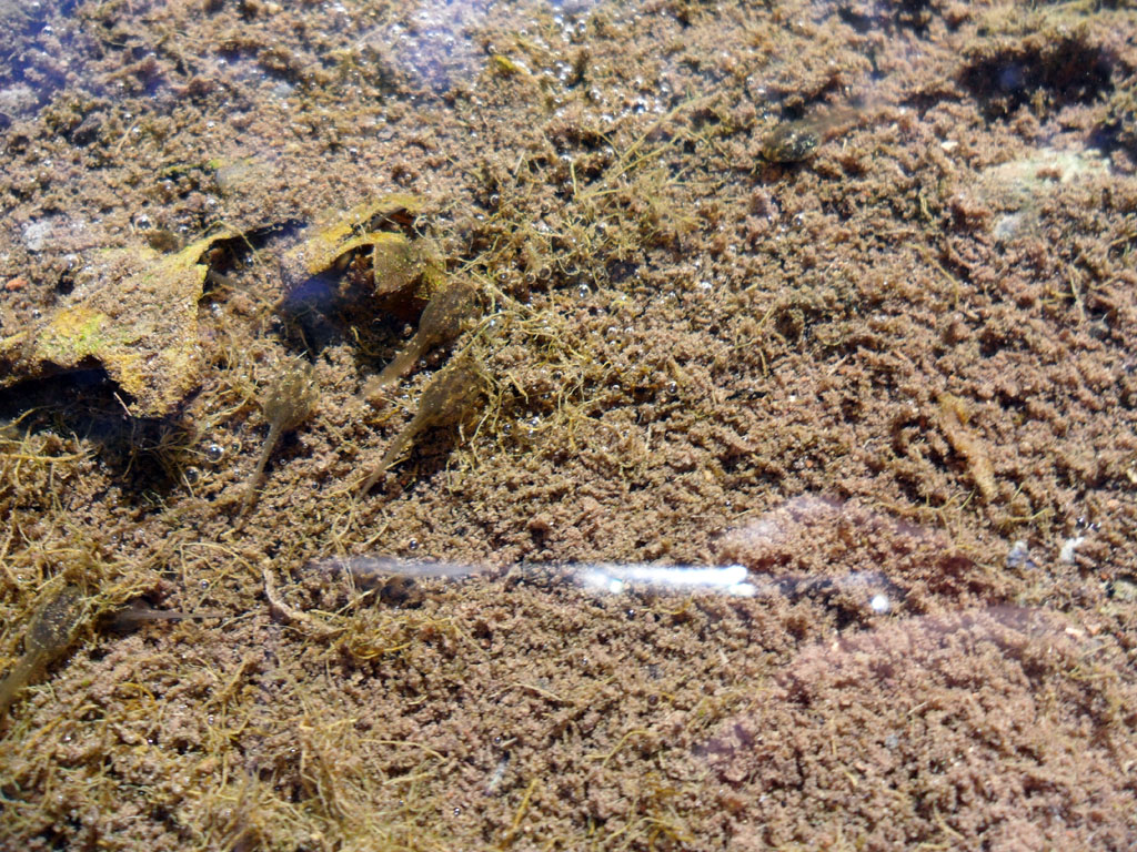 Sono andato poi al laghetto. Nelle zone con acqua limpida ma con il fondo ricoperto di piccole alghe c'erano tantissimi girini di varie dimensioni. Credo siano di rana visto che tempo fa ne avevo viste alcune.