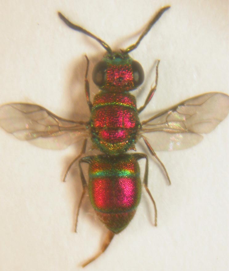 Ieri pomeriggio avevo programmato una uscita dedicata a maschi di mutillidi ma dopo ore e ore di sole non ne ho preso neppure uno!  Mi sono consolato con alcuni crisidi: questo e' lungo appena 5 mm, raccolto in un unico esemplare su infiorescenza di Daucus carota striminzita: per quanto riguarda il genere direi Chrysis, per la specie passo...