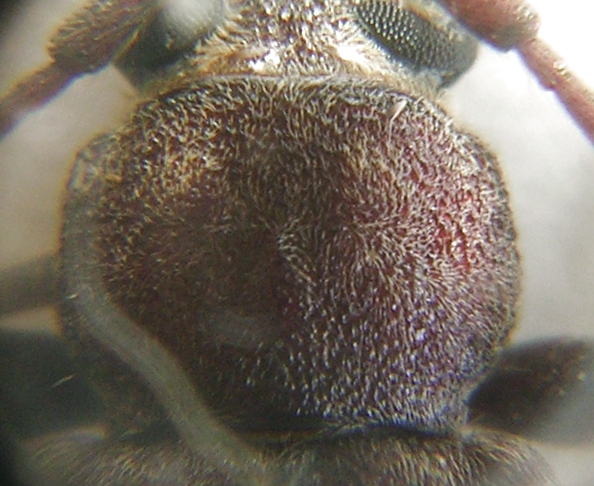 Cominciamo dalle elitre, che sono di colore scuro uniforme e coperte a chiazze da una corta pubescenza gialliccia.