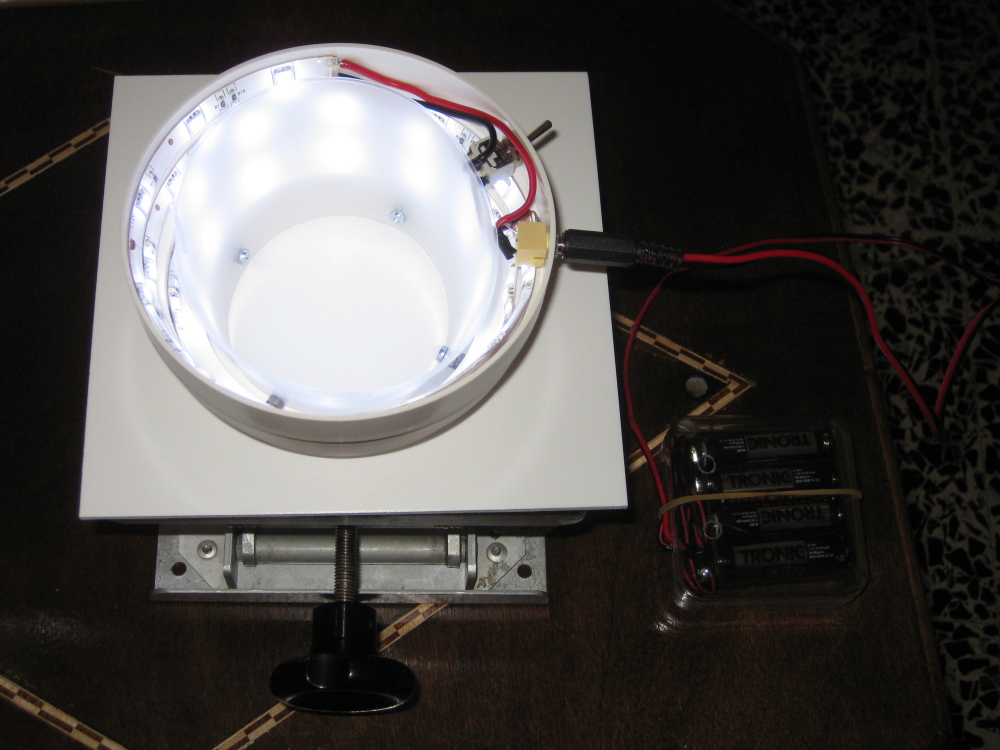 Qualcosa di simile a quello che aveva fatto Forbix, e mi pare anche Bollino. Sembra molto luminoso. Bisognerebbe provare a usarlo per qualche foto con lo stacking. Comunque la luce sembra buona. Sicuramente molto meglio del sistema che usavi prima.