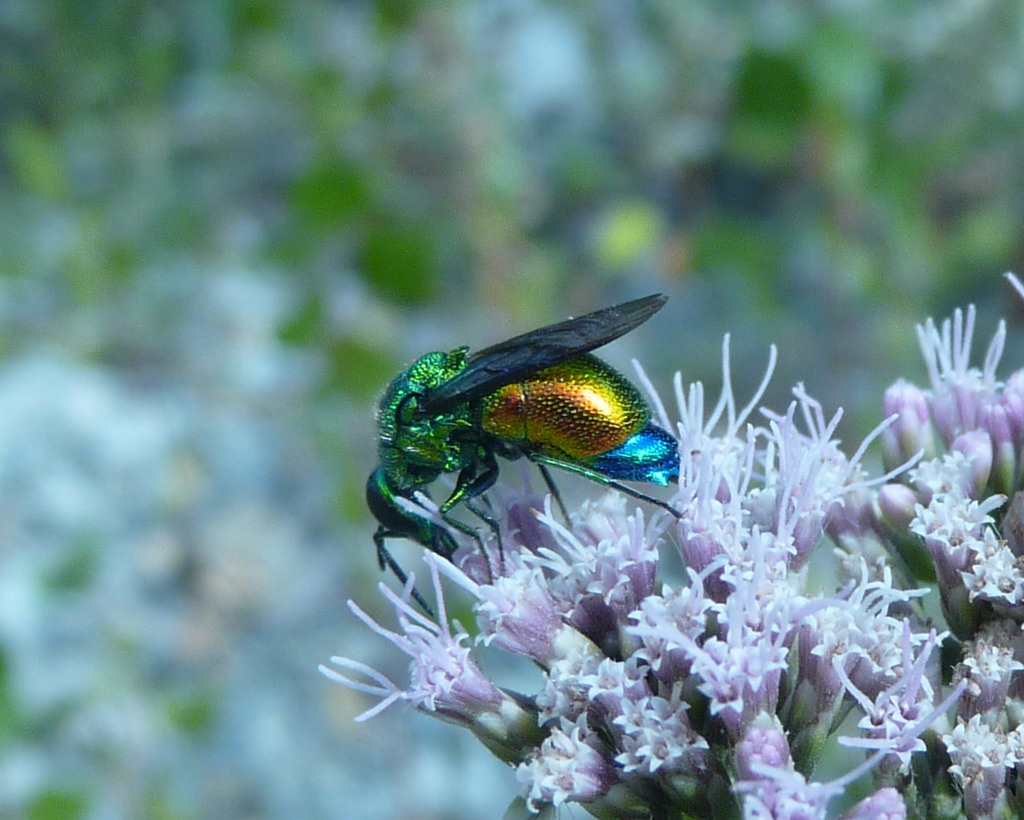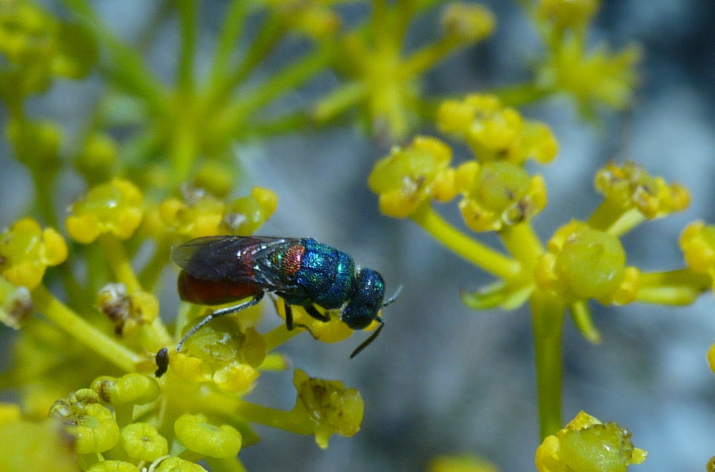 Sul sentiero vediamo diverse ombrellifere gialle, su cui non troviamo nessun criside a parte qualche Polistes, formiche e ditteri. Intanto (tra una spruzzata in bocca e una sul fogliame :lol1: ) spruzziamo della melata (acqua, miele di castagno e liquore all'anice) sulle querce presenti.