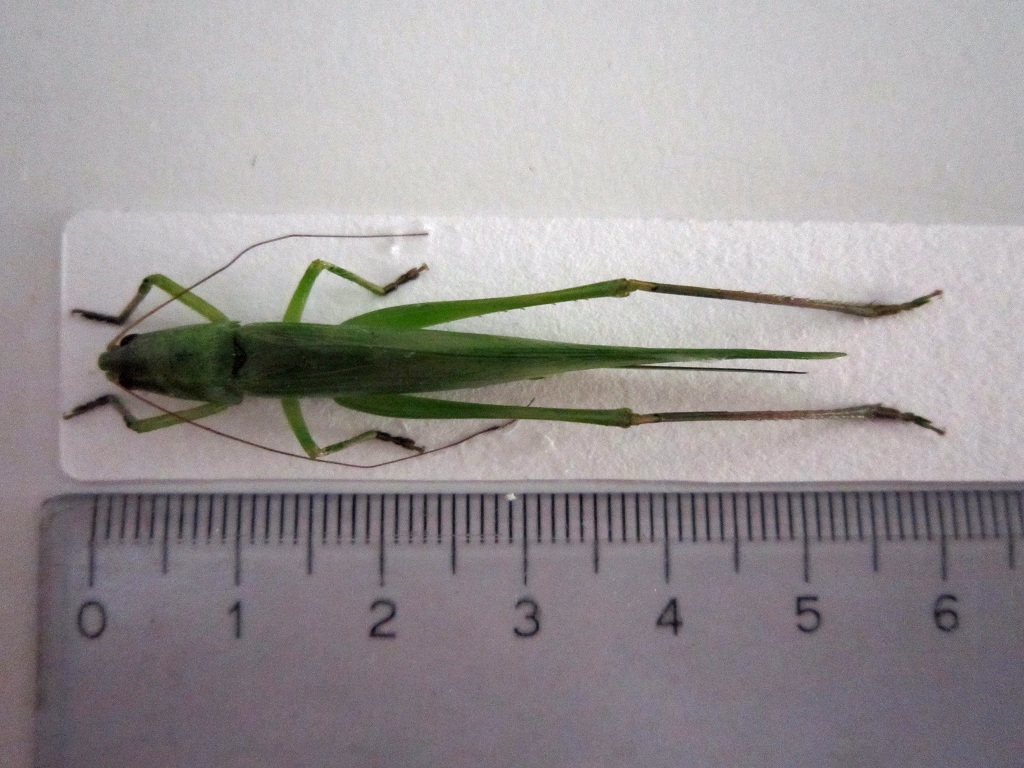 si riconosce per il capo appuntito dissimile da quello di tettigonia verdissima che è come quello degli altri tettigonidi. :bln: