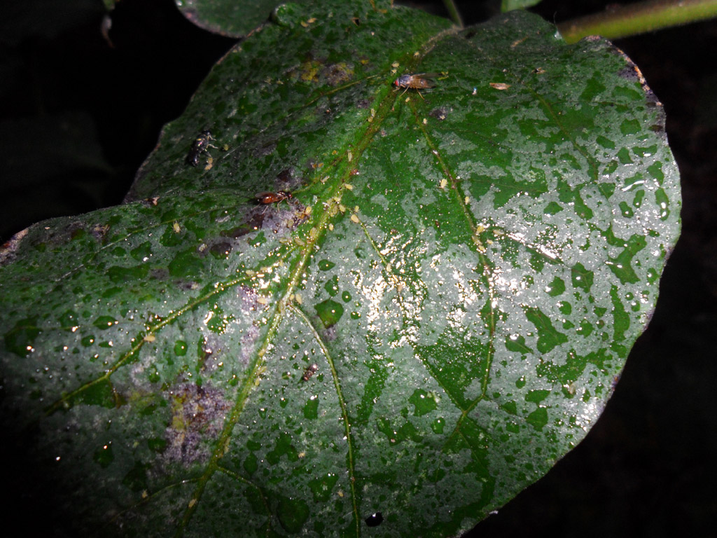 Provvedo subito a spruzzare un po' di melata su alcune foglie e subito la quantità aumenta a sproposito, ogni foglia aveva almeno 10 Imenotteri tra Ichneumonidi, Crabronidi, Torymidi e altro.