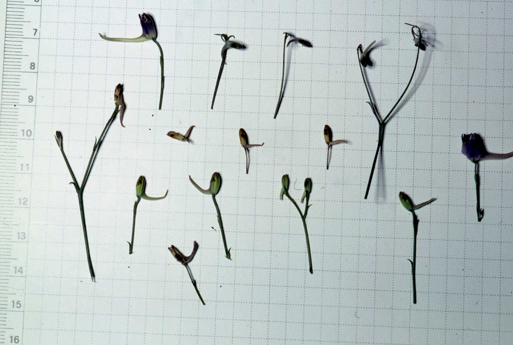 Piantine di Consolida regalis (spero si chiami ancora così), ranuncolacea che si trova su terreni poveri, sconnessi, spesso ai margini delle coltivazioni.