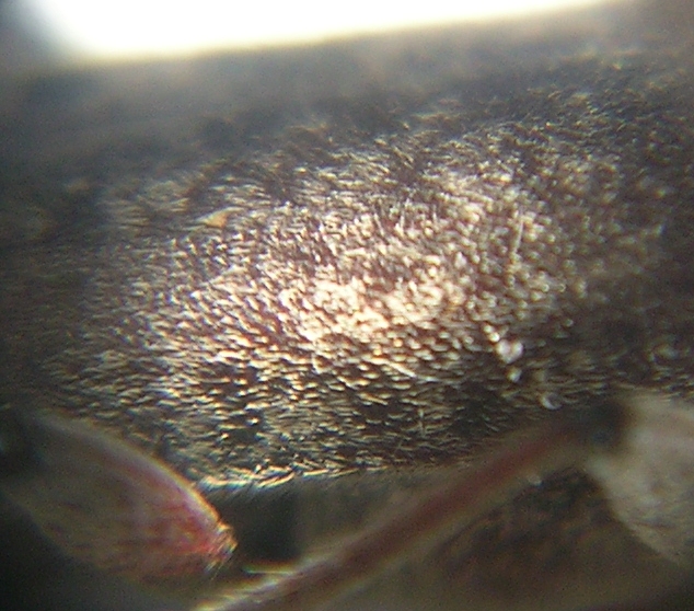 Cominciamo dalle elitre, che sono di colore scuro uniforme e coperte a chiazze da una corta pubescenza gialliccia.