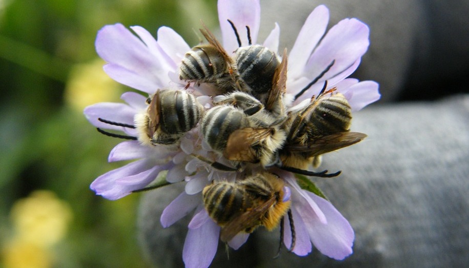 Verso il tramonto a sud di Paparis alcuni Imenotteri avevano deciso, per riposare, di stare vicini vicini su una Scabiosa s.l. C'era vento e la mano che vedete armata di guanto è quella di Agnoli.