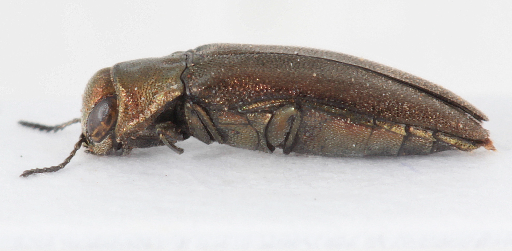 Puoi provare a fare una foto del protorace, e magari, già che ci sei, pure del capo? (con una foto sola dall'alto te la dovresti cavare). Per fare in modo che le carinule si vedano meglio, non usare una luce troppo diffusa. P.S. - Non capisco perchè sottovaluti le tue capacità fotografiche. Le tue foto potranno sembrare meno belle di quelle di Cosmin (cosa del resto non strana), ma a volte permettono di riconoscere i caratteri distintivi anche meglio delle sue (l'illuminazione molto diffusa dà dei risultati bellissimi da vedere, ma fa spesso sembrare gli insetti diversi da come li vediamo con luce normale. Guarda ad esempio le prime due foto di Latipalpis qui. La prima, di Cosmin, è bellissima, con una preparazione perfetta e pure con i genitali estratti. Un vero capolavoro. Però sembra una bestia diversa da quella della seconda foto, preparata peggio, con foto di qualità diversa, ma che appare come in realtà questa specie è).