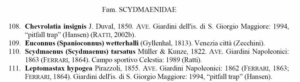 ELENCO DEI COLEOTTERI RISCONTRATI NELLE AREE URBANE DI VENEZIA LIST OF COLEOPTERA FOUND IN URBAN HABITATS OF VENICE, ITALY a cura di Enrico Ratti