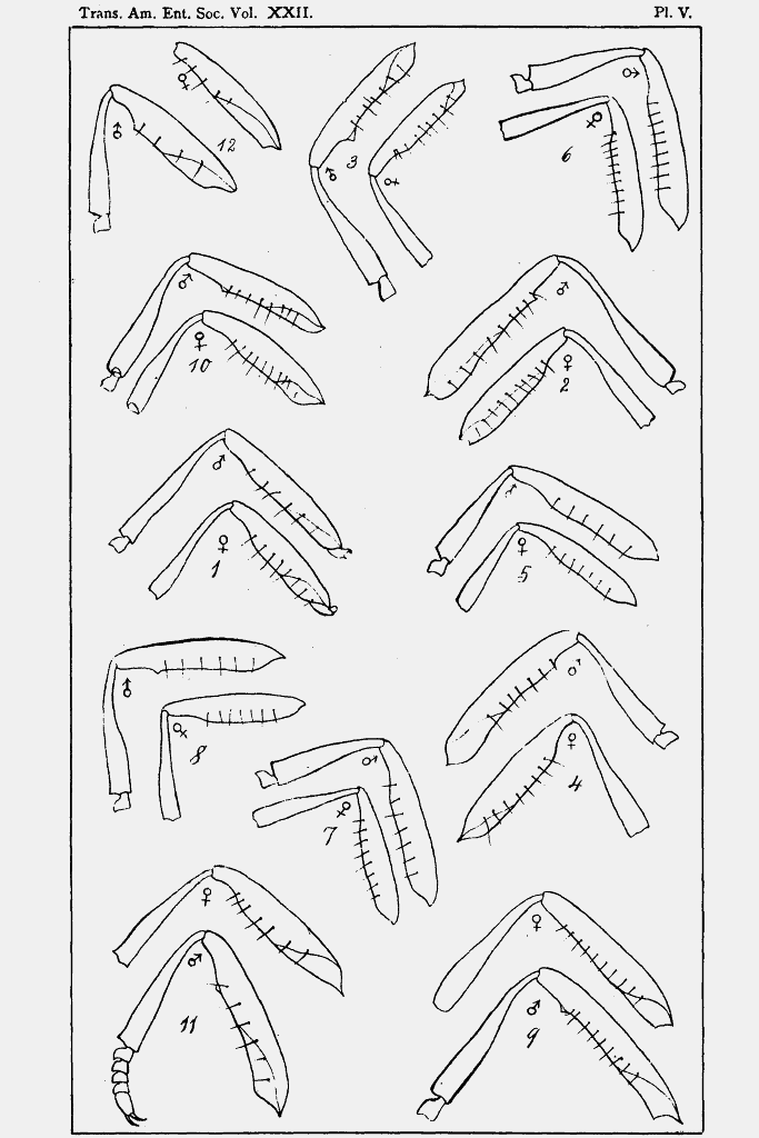 Ne ho estratto la chiave di identificazione delle specie allora (1890) riconosciute, che è questa: