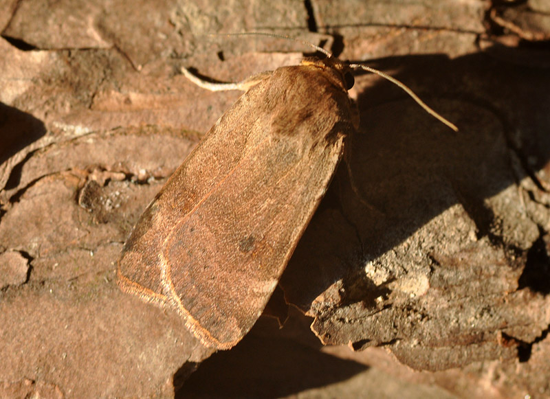 Per me si tratta di Noctua comes. Le due foto mi danno lo spunto per accennare ad una bizzarra, ma evolutivamente interessante, questione che si sta dibattendo in Gran Bretagna, e cioè se le specie di Noctuini che sovrappongono le ali come la presente siano mancine, destrimane (pardon: destriptere) o ambidestre. Insomma è partita una specie di campagna per monitorare le diverse posture nelle varie specie e nei diversi individui, anche su scala geografica. Da quello che ci fa vedere Betta dobbiamo intanto concludere che N. comes in Veneto sia ambidestra!