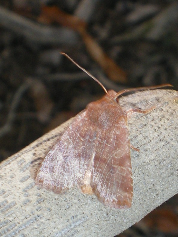 Ciao Giacomo, il colore così slavato mi aveva fatto dubitare che fosse una Conistra intricata ... ma, seppure appena accennata, è visibile la fila di tratti scuri lungo il margine dell'ala. Inoltre, da quel poco che si intravede, il colore delle posteriori sembra grigiastro.