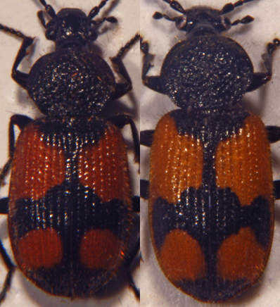 In effetti la macchia nera apicale nel 1° esemplare non interessa in maniera ben definita il bordo esterno delle elitre