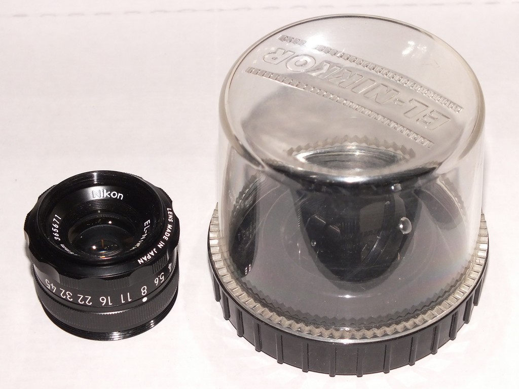 Si tratta di un obiettivo da ingranditore abbastanza economico e molto sottovalutato per l'uso in macrofotografia. Piccolo e leggero, viene venduto generalmente in un case sproporzionato, e col suo tappo copriobiettivo.