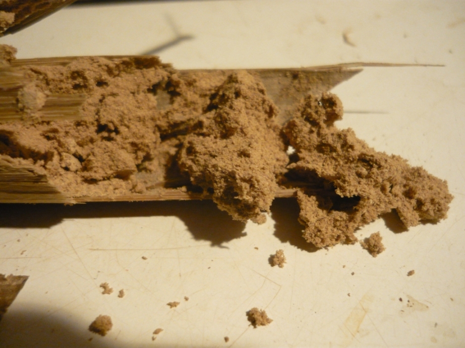 Pensa che a me la prima volta mi era sembrata della carne e avevo subito inscatolato la canna curioso di sapere quale strano Imenottero sarebbe uscito. Quando sono uscite delle Xylocopa sono rimasto alquanto deluso e informandomi ho capito che in realtà era solo del polline.