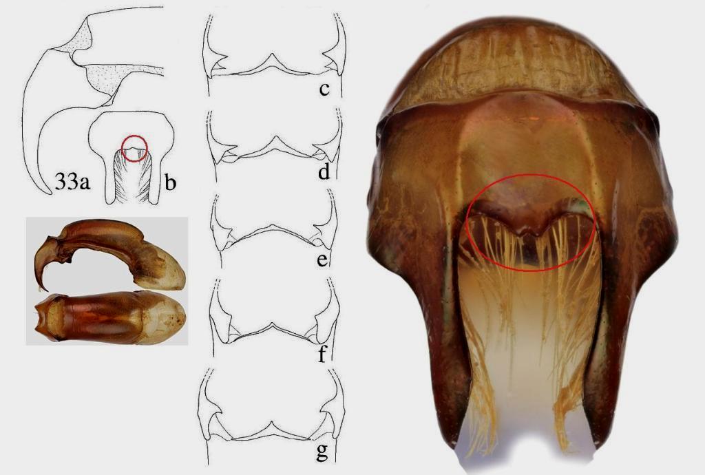 Ho finito con il nome di Brachysternus prasinus Guérin-Méneville, 1831 ma problema e che la genitalia non e come in quel lavoro, vedi la vista caudale di parameri (mi scusi per la qualida di quella foto). In mio esemplare la punta di parameri e acuto (rotondo in lavoro) e tra loro in vista dorsale e una punta con una picola morsa (il lovoro e compeltamente senza punto). Spero che che qualcosa da capire dalla mia italiana.