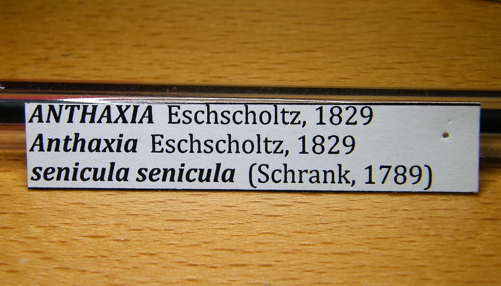 Fuori la cassetta, ad esempio Buprestidae, Anthaxiini poi avanti alla specie, in cassetta, un cartellino come i miei.