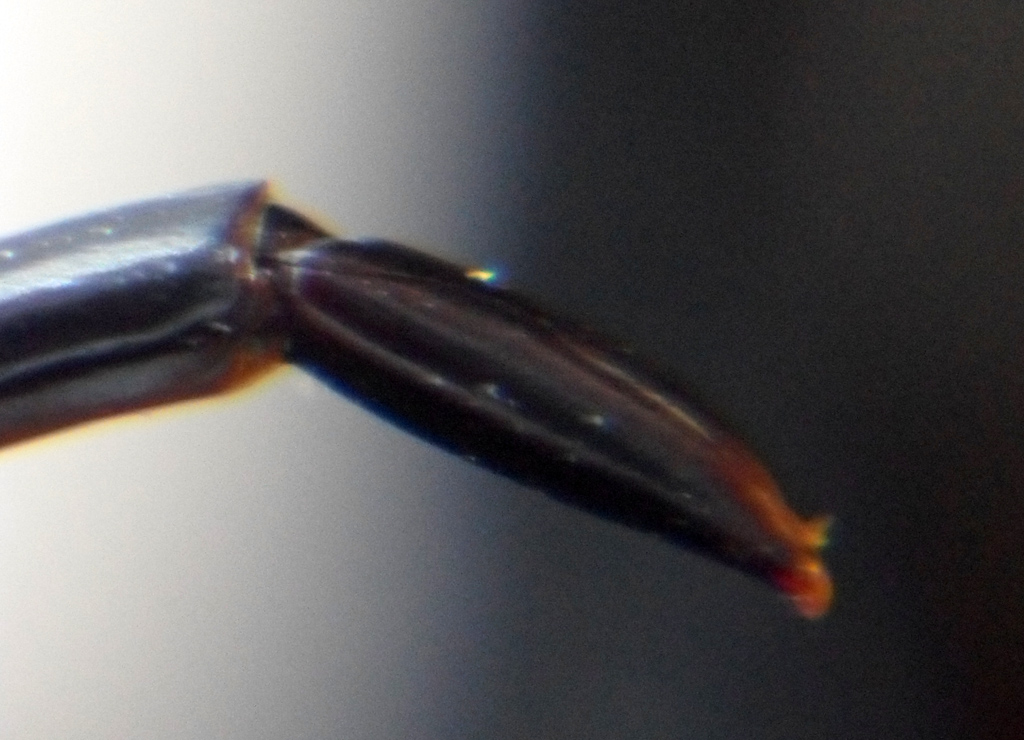 L'unico esemplare in mio possesso è una femmina di Pelecinus polyturator, specie caratterizzata dal corpo completamente nero brillante. E' la specie più diffusa, infatti si può trovare in: Canada, Messico, Guatemala, Honduras, Nicaragua, Costa Rica, Panama, Colombia, Venezuela, Guiana Francese, Ecuador, Perù, Bolivia, Paraguay, Brasile, Uruguay e Argentina.