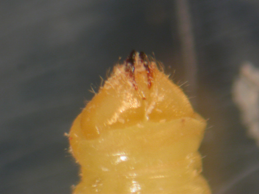 Si potrebbe vedere meglio l'ultimo segmento della larva? Sono delle sclerosi azioni quelle che si vedono?