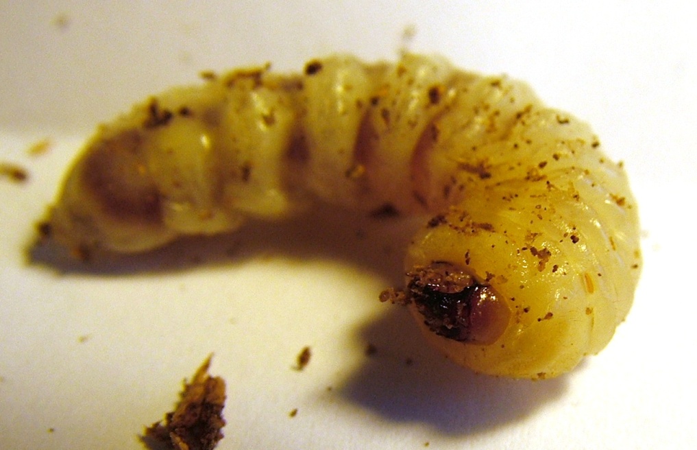 Armati di pazienza, una larva di ergates di 30 mm. è parecchio indietro in termini di sviluppo.
