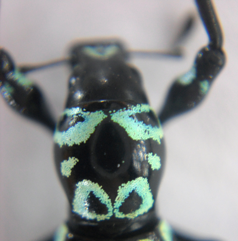 E' sempre lui. Questo gruppo ha una notevole variabilità intra- e inter-popolazione nella colorazione. E' anche certamente coinvolta in anelli mimetici con altre specie di Pachyrhynchini (Pachyrhynchus e Metapocyrtus s.l.), altri Entiminae (Eupyrgops, Neopyrgops, Polycatus) e Cerambycidae (Doliops). Recentemente ho notato che anche alcuni Chrysomelidae Eumolpinae sono coinvolti nel mimetismo.