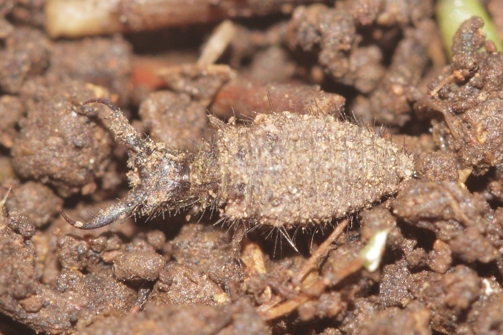 Distoleon tetragrammicus (Fabricius, 1798) - Myrmeleontidae - Larva 1° Stadio + biotopo