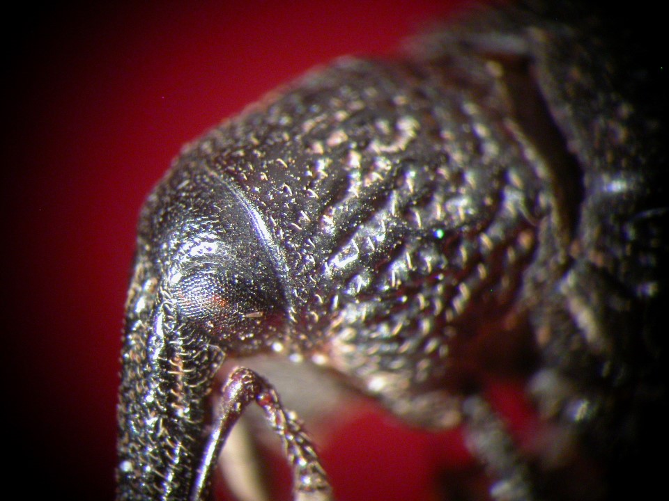 Ho riguardato un po' delle foto dei tipi o esemplari vari di Aclees, e tra i tanti, direi che Aclees foveatus, specie della Cina, ha notevoli somiglianze con quello che è stato introdotto da noi, anche se la punteggiatura del pronoto è un po' differente, ma è un carattere in parte variabile. Le foto sono quelle che sono, ma le ho fatte nel lontano 2005, con i mezzi che avevo allora, si potrebbero anche rielaborare un po' con Photoshop, togliere il giallo eccetera, ma era tanto per dare una idea. A proposito dell'esemplare pieno di pruina di un altro post, ha anche apparentemente un dente femorale più robusto rispetto agli altri esemplari italici e puntaggiatura del pronoto piuttosto rada.