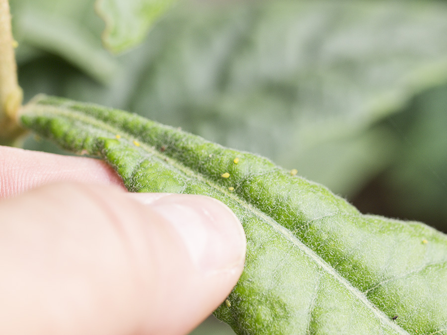 Microabitat: Su delle foglie di Nespolo del Giappone in giovine pianta.