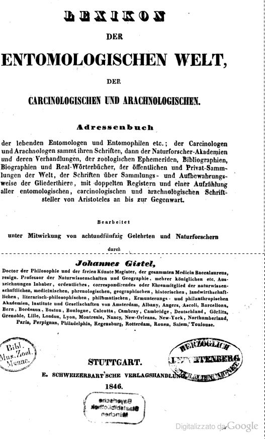Guardando l'immagine di quel burlone di GistlGistelTelesius (che tra l'altro ha creato una confusione inenarrabile nei Buprestidi, ridescrivendo quasi tutti i generi noti con i nomi che più gli aggradavano), mi è venuto in mente che si potrebbe creare una discussione su cui mettere le immagini dei vari entomologi del passato, sempre che già non sia stato fatto e non me ne sia accorto. Ciascuno di noi ne ha sicuramente a disposizione
