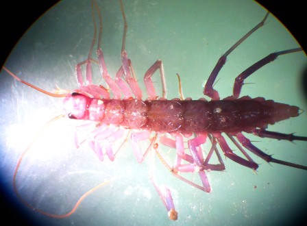 questa scolopendra è stata trovata vicino a Bocca d'Ombrone, su terreno fangoso, e misura circa 2 cm di lunghezza
