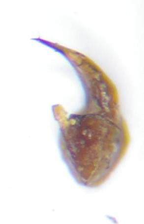 Convivente con la Chrysomela di prima, ce n'erano di colori molto diversi (da tutta nera a così). Ho tentato una foto dell'edeago, che fa due terzi di schifo... poco prima dell'apice c'è una spina aguzza che si vede poco, ma c'è!