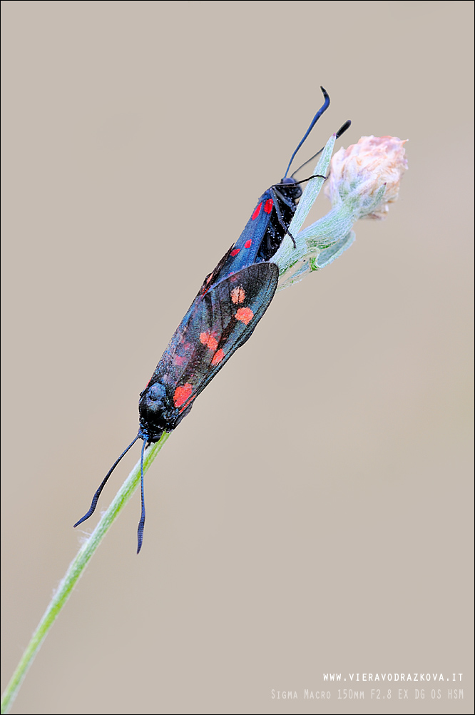 Buon giorno a tutti. E' il mio primo post, ho fatto la mia breve presentazione nella sezione di primo ingresso. Qualcuno riesce a schiarirmi le idee riguardo queste Zygaene. Prima in copia e poi singola con la vista forse migliore. Grazie.