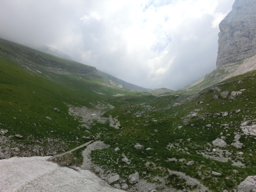 Dopo un'ora di impervia salita, si esce dal bosco di faggi e si apre la valle. Dietro ogni collina si spera di veder comparire il lago ai piedi del Vettore, ma così non è!