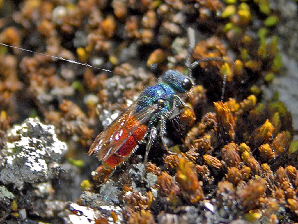Questo piccolo criside gironzolava su una roccia attorno ad un nido di vespe. Più volte, approfittando della distrazione dei proprietari, si è infilato nelle cellette del nido, riemergendo dopo qualche istante. Dopo essersi allontanato per alcuni minuti, ritornava sul posto e ripeteva il comportamento. :o