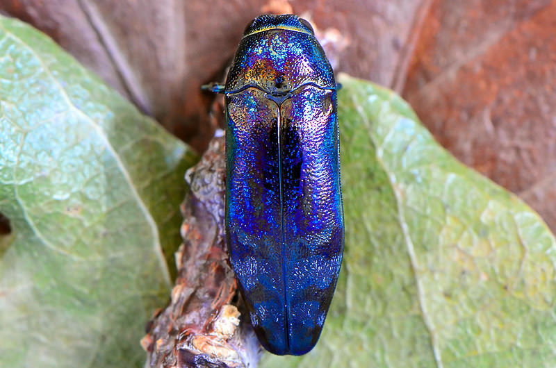 C'è però da dire che questa specie ha gli adulti in attività da maggio ai primi di luglio. Questo di settembre è decisamente fuori stagione, probabilmente a causa delle strane condizioni climatiche di quest'anno, di cui parlavo proprio pochi giorni fa. Ed anche in questo caso si è verificato quello strano fenomeno che riguarda molti Buprestidi a colorazione metallica. Ovvero, quando sfarfallano in ritardo, in piena estate, invece che nel loro periodo solito, hanno una tendenza più o meno spiccata alla cianescenza. Questo è un esemplare davvero fuori dal comune. Ma ancor più che per il colore, per il periodo in cui l'hai trovato.