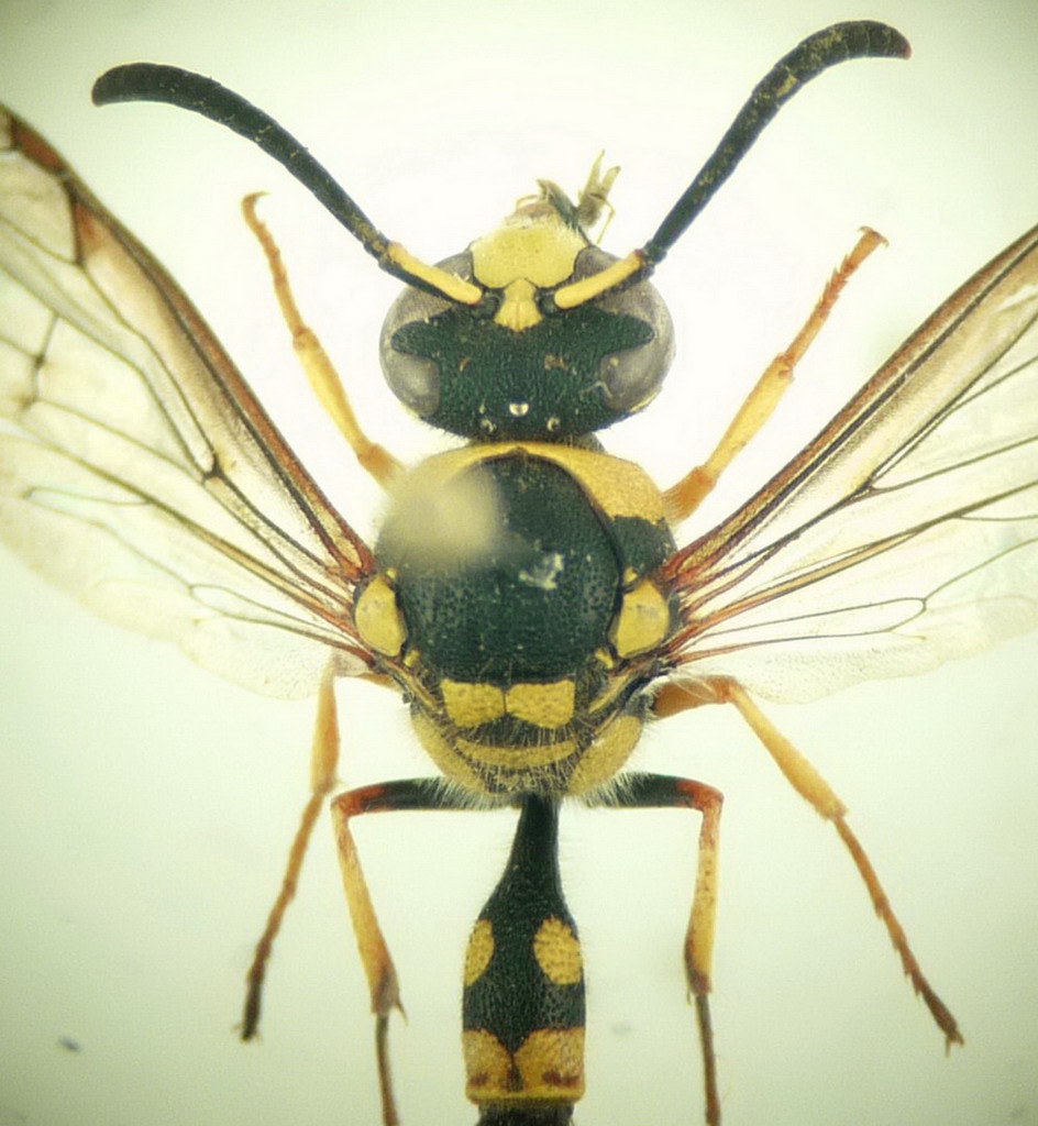 Prima di postare i vespidi lampedusani volevo mettere questa Eumenes raccolta la scorsa settimana a Marina di Massa durante un giorno di relax al mare :hol Trovata a pranzo, su fiori di Mentha spicata in un vaso del cortile interno di una pizzeria. Ho fatto più foto possibili su diverse parti del corpo, sterniti, tergiti, peli delle tempie, torace, ala, clipeo... probabilmente ne serviranno altre, vediamo che riusciamo a cavare da queste per ora ;) Ho fatto fatica a fare la prima foto, visto che tutta la vespa non ci stava nella focale del microscopio, e ho fatto non poco lavoro di fotoritocco per rimuovere l'alone nero della lente :devil: