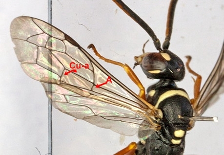 Cu-a vein in fore wing perpendicular to vein A.Antennae orange ventraly.