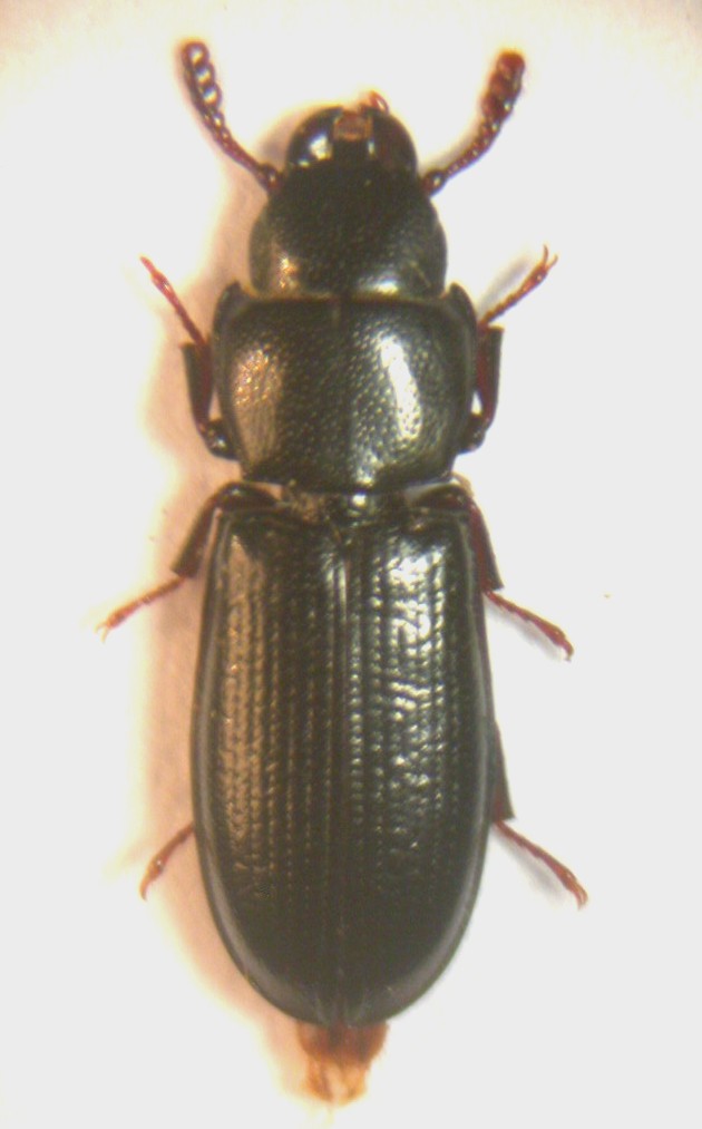 Questa è una bestia che non avevo mai raccolto prima: si trovava sotto corteccia di quercia da sughero, misura 6.4 mm. Ritengo debba ascriversi al genere Tenebroides e forse potrebbe trattarsi di T. maroccanus. Ma non ho il necessario materiale di confronto: