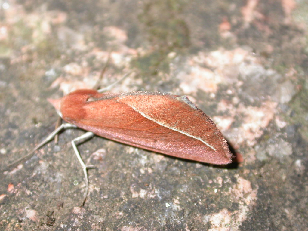 Un geometride abbastanza frequente in questo periodo, fortemente attratto dalle fonti luminose: Compsoptera opacaria. In riposo la postura di questa specie è particolare.