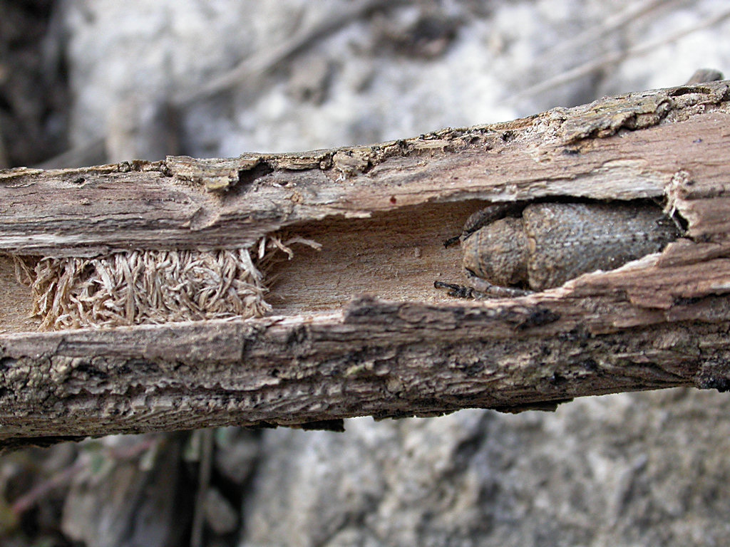 trovò una piccola larva di cerambicide.