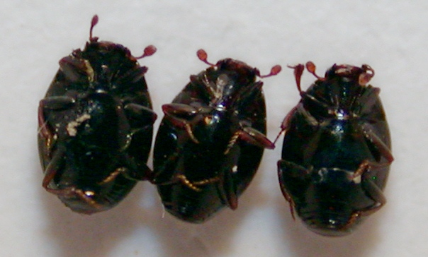 Inserisco qua di seguito la foto degli altri tre esemplari, perchè in effetti fra loro non sono poi tanto omogenei come dimensioni (in ogni caso fra 1,5 e 2 mm) e da queste foto non credo si possano evidenziare evenuali differenze... Insomma, non sono più convinto che siano specie diverse... Penso si potrà dire solo quando gli isteridari di fiducia li avranno visti dal vivo! :D
