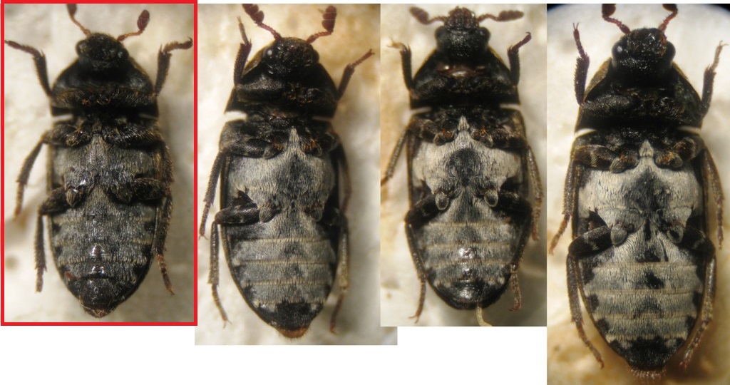 (NB: dopo la determinazione ho incorniciato in rosso Dermestes mustelinus per il confronto con i 3 Dermestes undulatus)