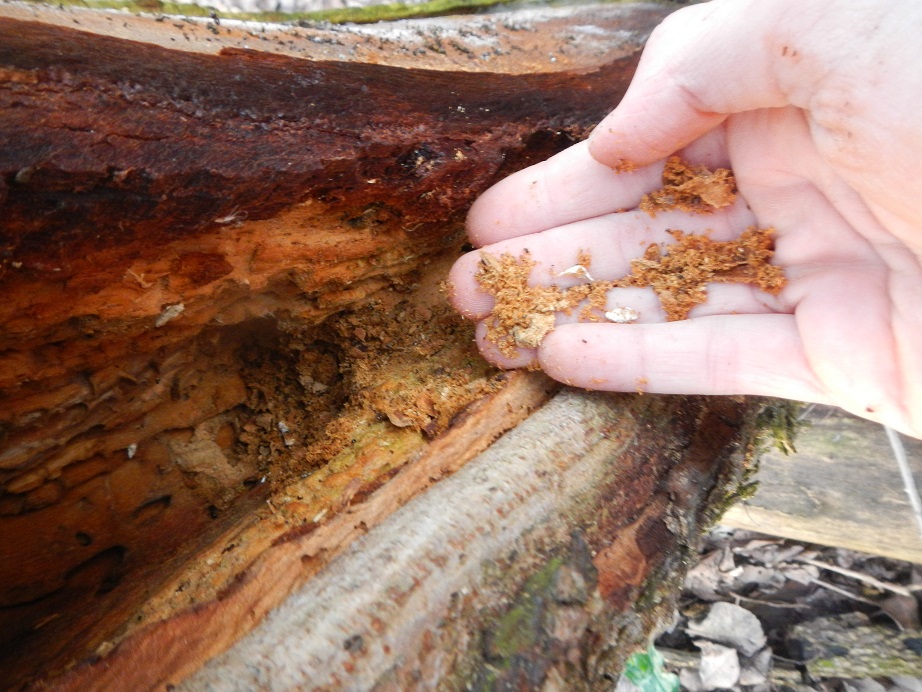 Il tronco era già completamente marcio all'interno, e non so come, ma stava ancora in piedi.