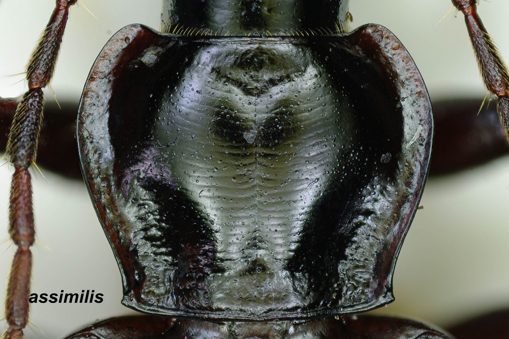 Eh, da foto in ambiente, magari un po' di scorcio, temo sia molto difficile discriminare queste specie: ci sono in ballo il colore dei palpi (bruni o quasi neri, figurati!) sottigliezze sulla forma del protorace e caratteri degli organi genitali maschili (e ci vuole la dissezione).